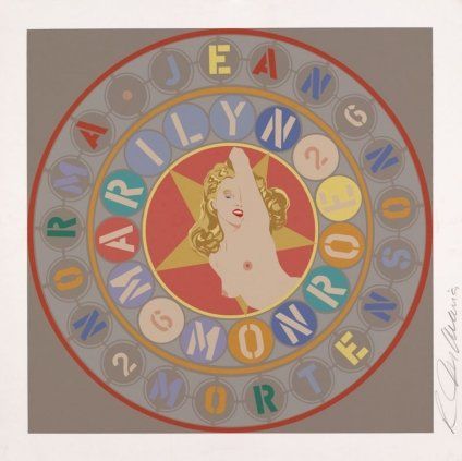 Robert Indiana reprend également le mythe de la Star, mais s’intéresse plutôt à l’événement de sa mort. En effet, l’œuvre The Metamorphosis of Norma Jean (1997), joue sur la numérologie avec les chiffres 2 et 6 qui sont répétés, les dates de Marilyn étant 1926 - 1962.