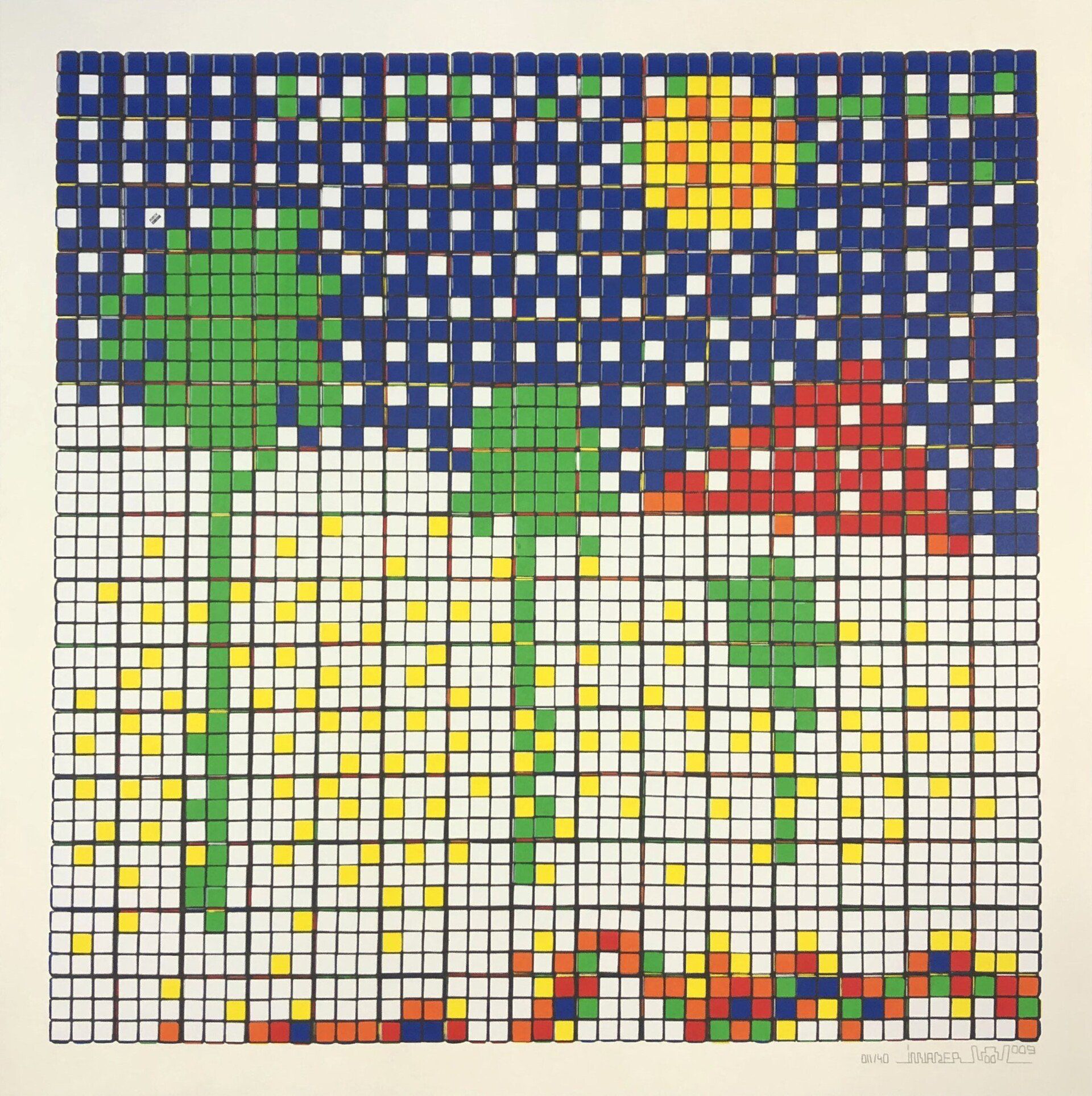 À l'aube d'Internet, Invader est inspiré par la pixellisation informatique. Son travail consiste à retravailler les images de manière pixélisée, en représentant des personnages de jeux vidéo créés en mosaïque.
