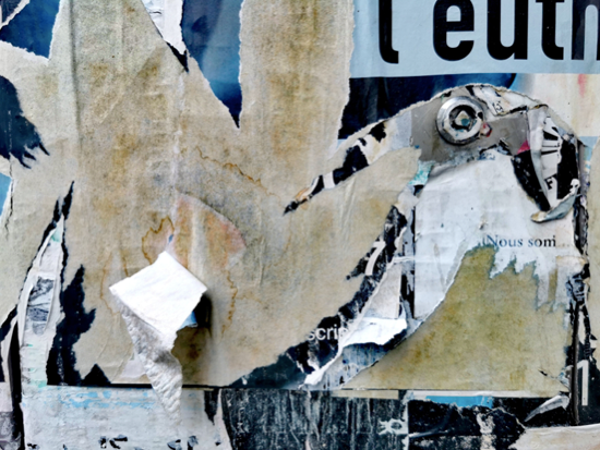Dans sa pratique artistique, elle se concentre sur le papier, à la fois comme substance et comme sujet. Dans ces bouts d’affiches usagées, déchirées, elle trouve de la poésie, et, par le biais de la photographie, ceux-ci acquièrent une nouvelle existence et un nouveau sens. Déambulant dans les métropoles contemporaines, elle dessine sa propre cartographie, « en flaneur », transformant le matériau imprimé en document et symbole du temps qui passe. Kasia Wandycz prend plaisir à observer le papier, à s’interroger sur son avenir et ses perspectives. Son travail est une réflexion sur la signification du rôle du papier dans nos sociétés, et, indirectement, sur l’impact des appareils électroniques. Quels sont les effets profonds de la disparition progressive du papier imprimé au profit des écrans ?