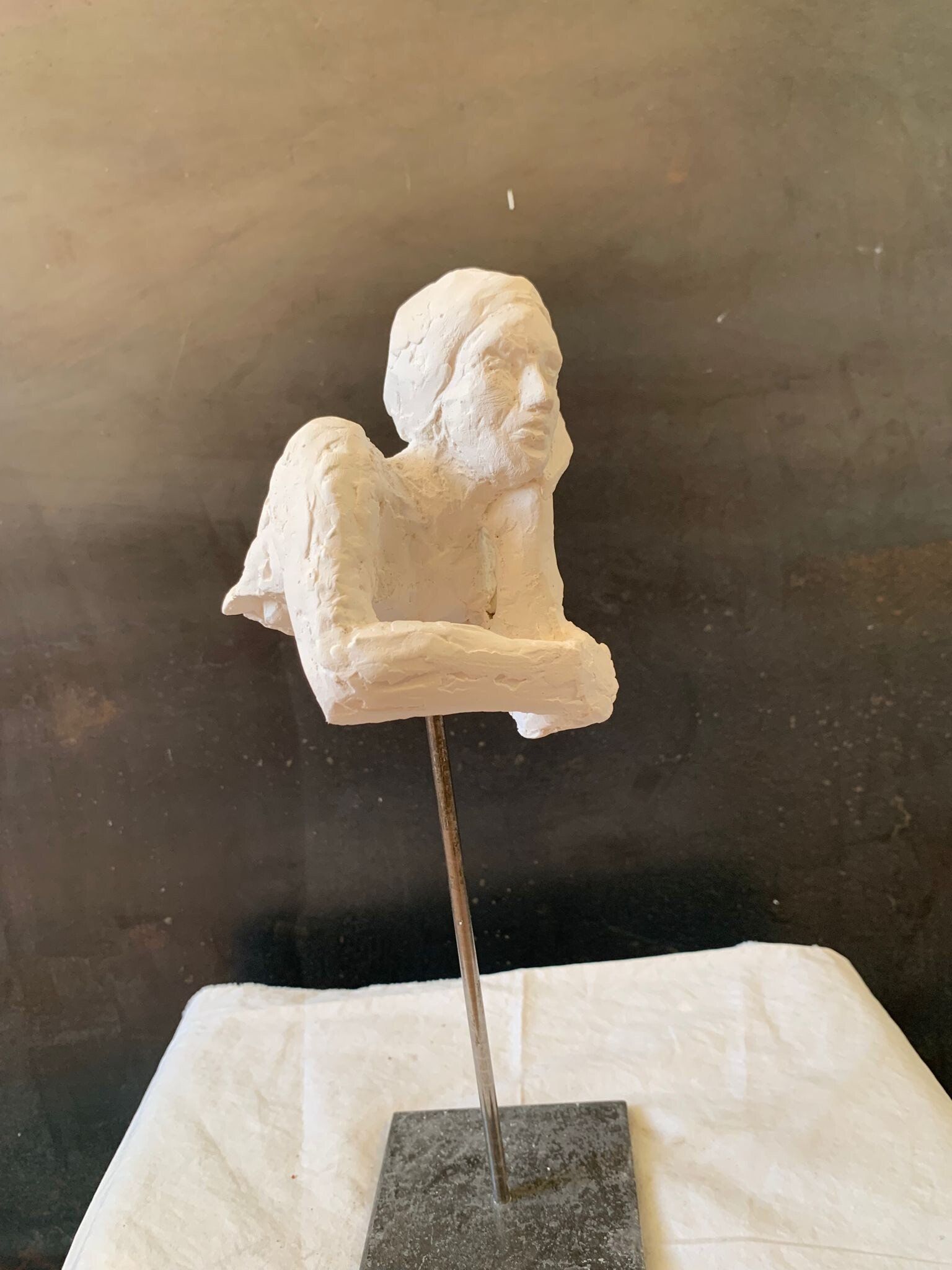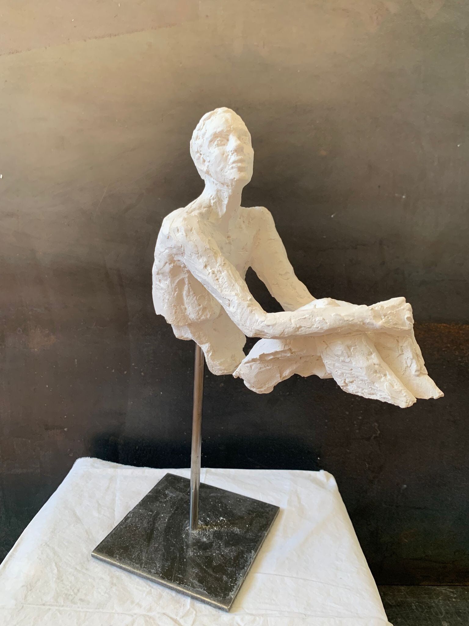 L’enfance et l’adolescence de Sandrine Donnio Renaud sont bercées par l’histoire et le travail du sculpteur Francis Renaud, cousin de son grand-père disparu en 1973 peu de temps après sa naissance à elle. C’est notamment en observant ses sculptures monumentales en Bretagne et à Paris qu’elle se familiarise avec la force des volumes et leur capacité d’évocation. Après une première vie dans le monde de l’entreprise, Sandrine Donnio Renaud s’essaie au modelage de la terre pour la première fois en 2011. Au contact de l’argile, elle se sent connectée à cette histoire familiale et la sculpture devient un mode d’expression dès les premiers instants. Dès 2013 son intérêt pour les volumes la conduit à s’initier au travail du plâtre qui lui permet d’envisager les sculptures grand format. Là, les corps se déforment, prennent leur liberté dans un mouvement élancé ou accablé et la blancheur de la matière capte ou renvoie la lumière au gré des aspérités. Sandrine Donnio Renaud est sociétaire de la Fondation Taylor (Paris 9) et lauréate en 2019 de l’appel à projet lancé par la société Dalkia, filiale du Groupe EDF pour réaliser la sculpture-trophée qui récompense les prix internes de Dalkia jusqu’en 2022. Elle expose son travail depuis 2017. Elle a notamment exposé en solo au Pavillon Davioud dans le Jardin du Luxembourg à l’invitation du Sénat en juillet 2019. Sandrine Donnio Renaud vit et travaille à Paris dans le 9ème arrondissement.