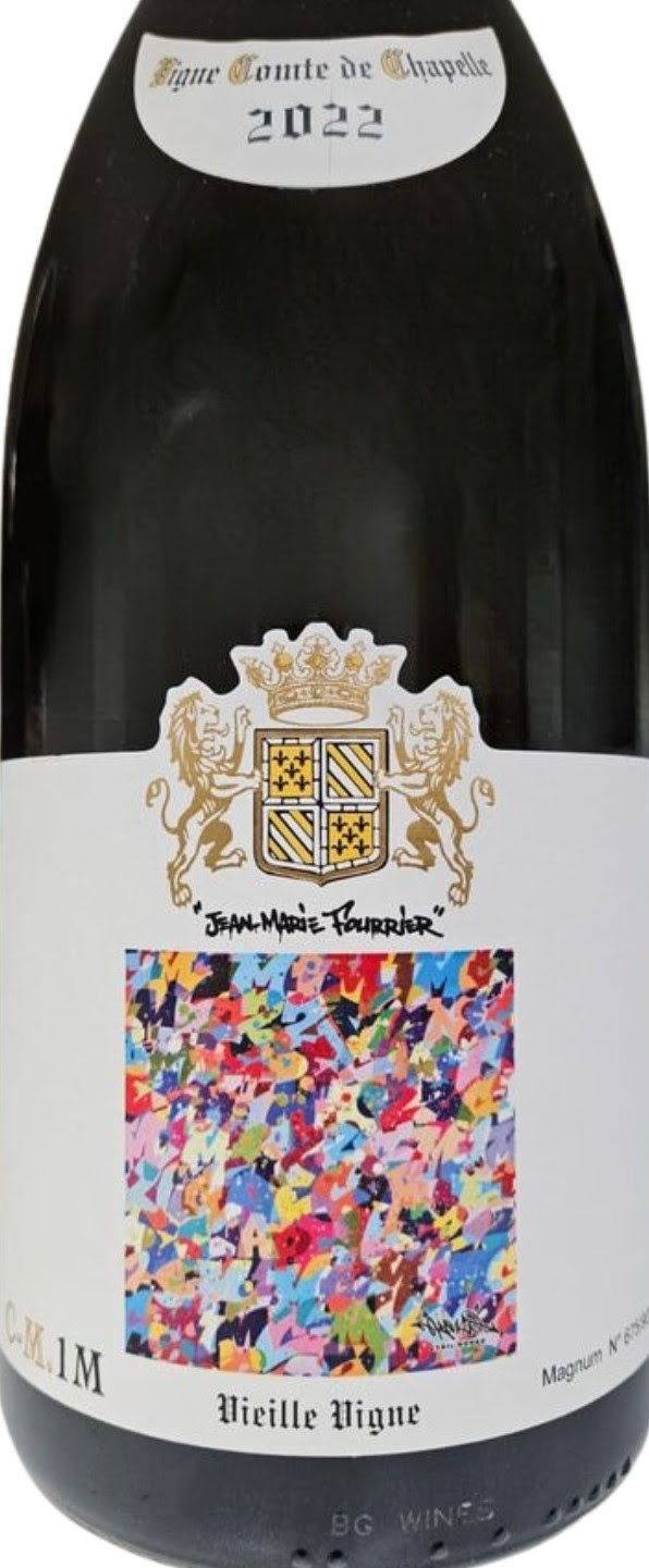 Comte de Chapelle produit par JM Fourrier dédié à l’artiste Kongo qui a réalisé l’étiquette des Magnums du premier millésime produit.