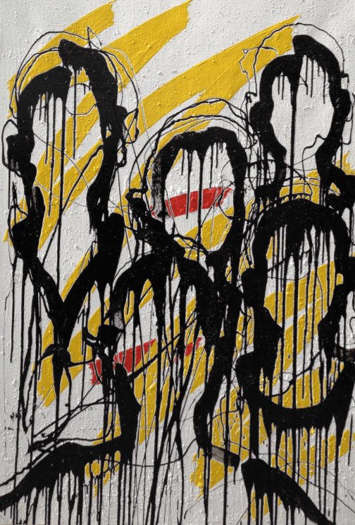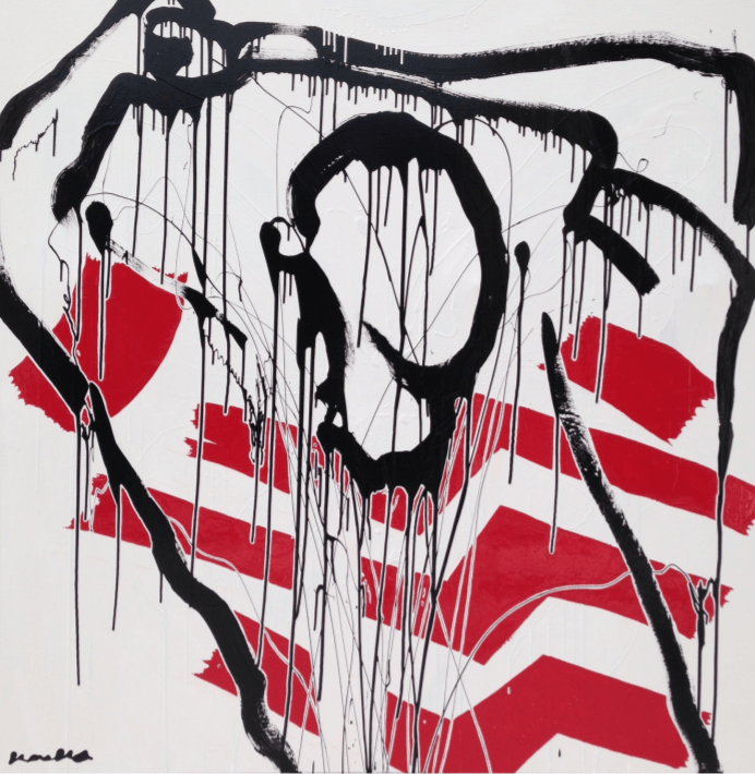 Les guerriers Bantus, mémoire des civilisations et témoins de l’origine de l’homme et les portraits évoluent vers des silhouettes sans visage qui semblent s’imposer fièrement. En explorant l’universalité dans sa représentation la plus minimaliste, par l’expression seule du trait, Kouka revient à un essentiel sublimé par la force de nos Origines.
